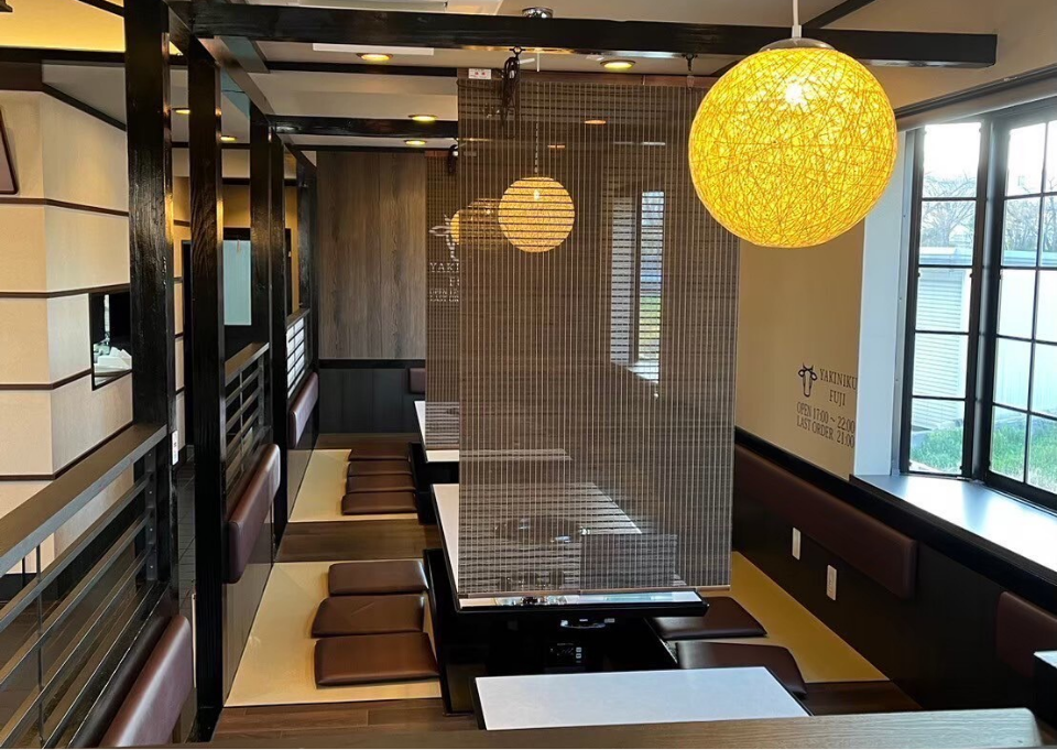 焼⾁富⼠では清潔感あふれる落ち着いた空間で、ゆったりと心ゆくまでお⾷事をお楽しみいただけます。